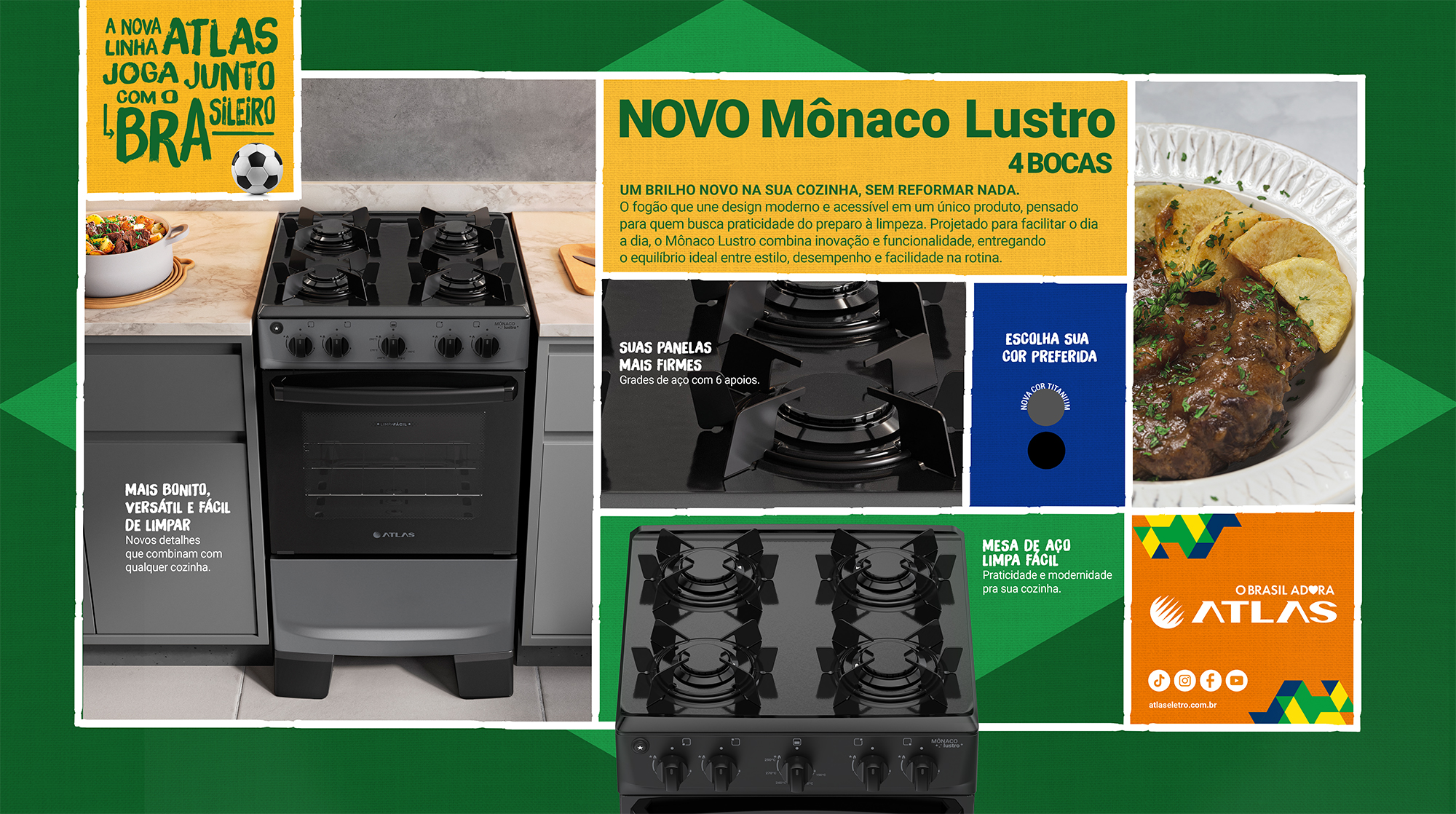 Com tradição Atlas, referência quando o assunto é fogão, você tem a certeza de levar para casa um produto pensado para transformar sua rotina de forma prática e confiável.