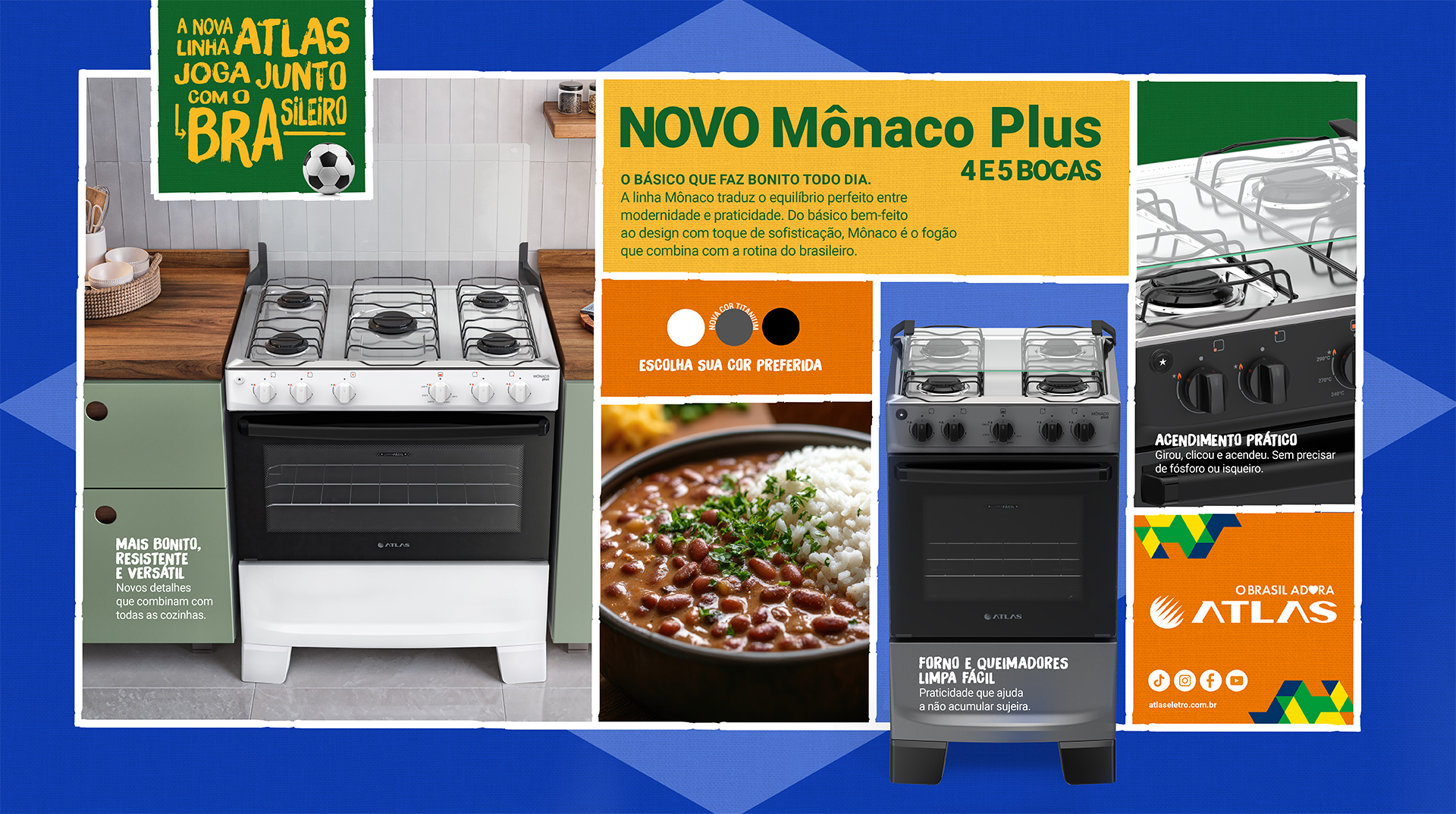 E como todo fogão Atlas, ele traz confiança de uma marca com tradição no Brasil: durabilidade, modernidade e produtos feitos para facilitar a sua vida.