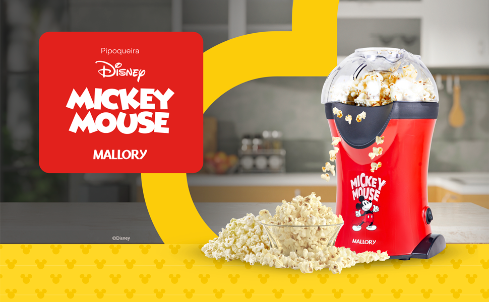 Chegou a Pipoqueira Elétrica Mallory Disney Mickey, que garante pipocas crocantes, sequinhas e mais saudáveis, de maneira muito rápida e prática! Sem usar óleo, sem sujar a cozinha, sem o risco de queimar pipoca. Pipoca pronta em menos de 3 minutos é tão incrível que ela até serve por você: basta colocar o milho no recipiente, apertar o botão de ligar, e em poucos minutos ver as pipocas caindo quentinhas diretamente no recipiente que você escolher.
